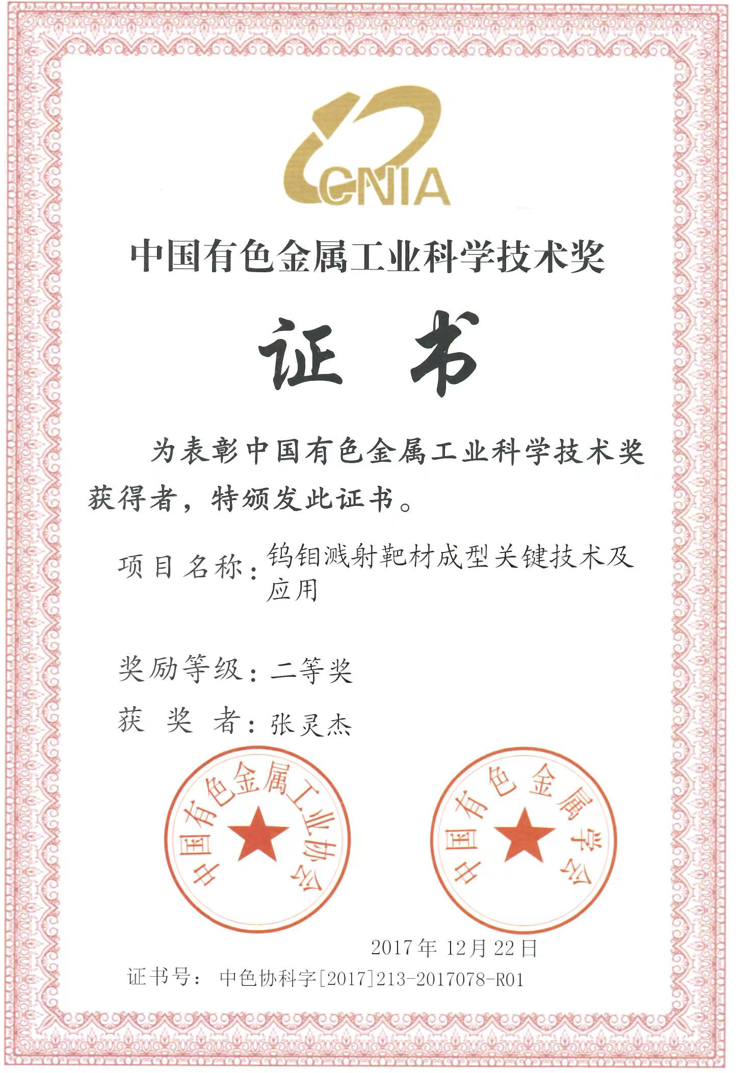 四、荣誉: “国家高新技术企业”, 国家专精特新重点“小巨人”企业, “国家科技型中小型企业”, “河南省钼及钼合金工程技术研究中心”, “有色金属省部共建协创中心理事单位”,“2025年河南省首批次新材料产品”,等。